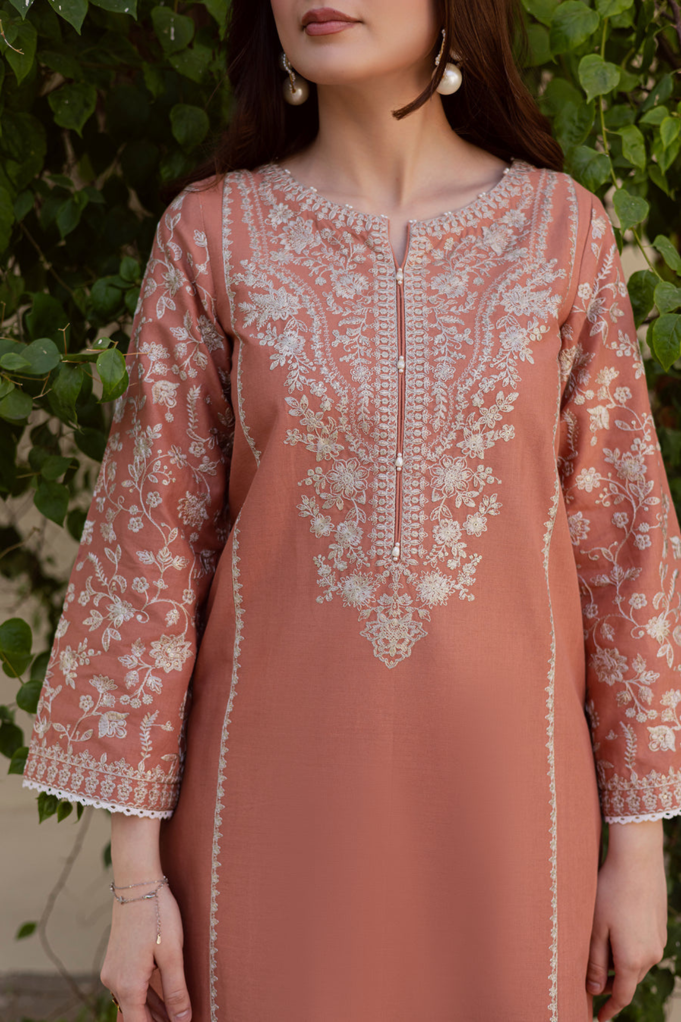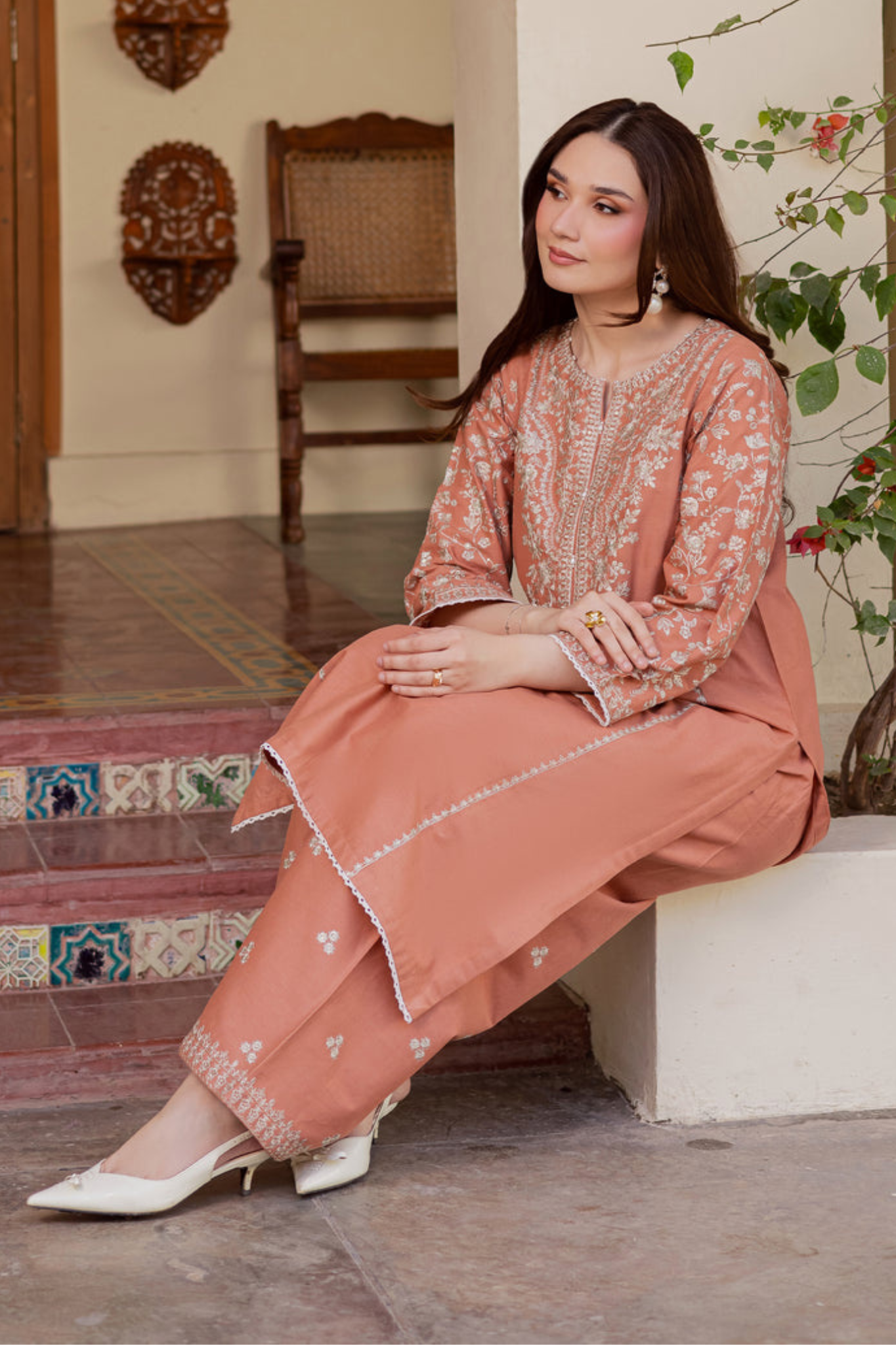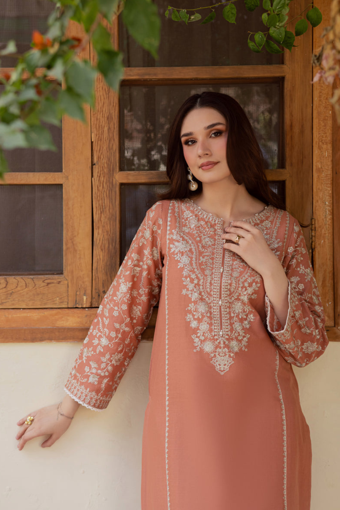 Paired with a shalwar featuring minimal embroidery spread, the outfit feels balanced and easy to wear for everyday elegance.
